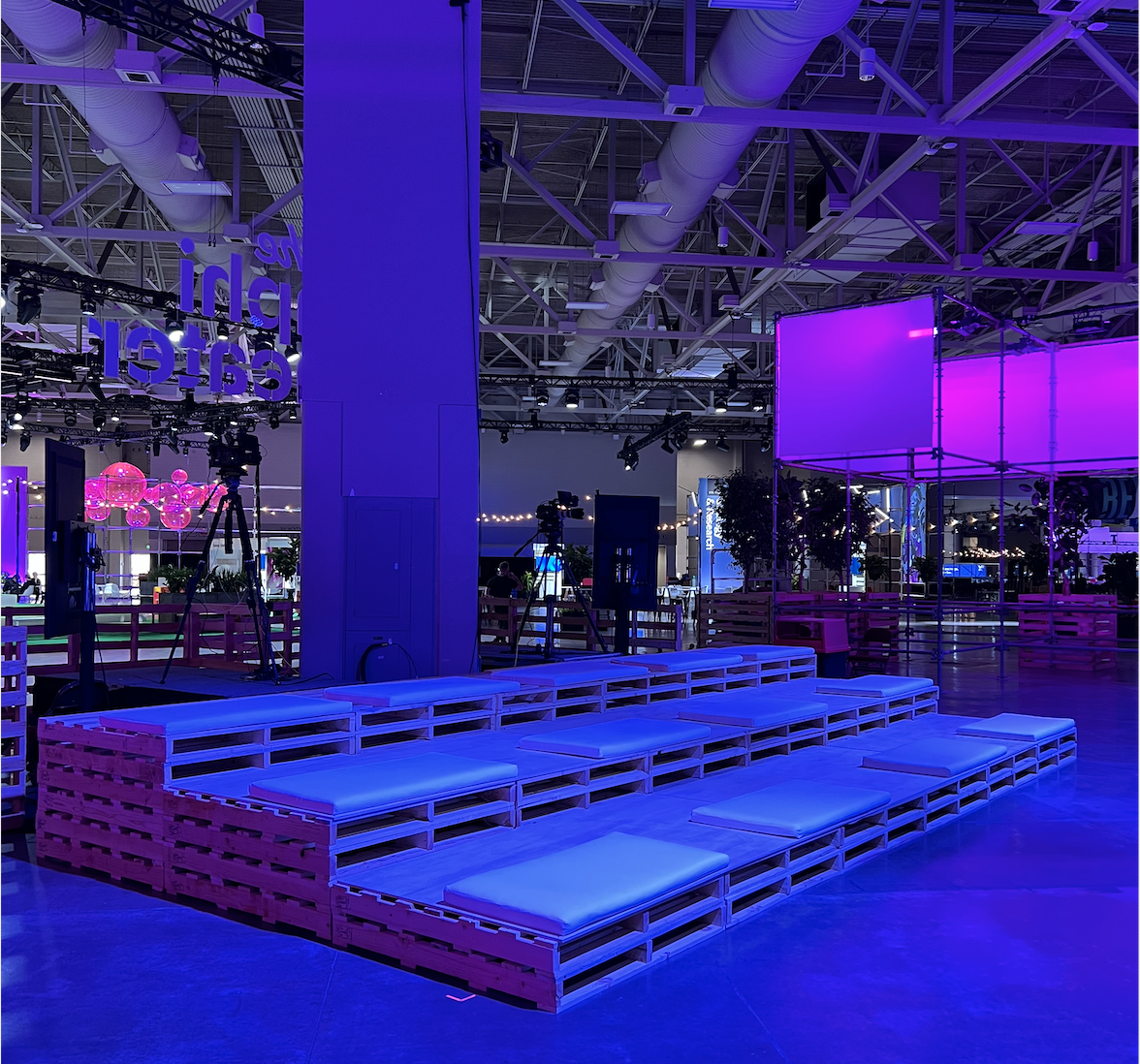 With our modular sofas and pallet furniture, you can create multiple layout possibilities for corporate and experiential events, festivals, and weddings. Design a large area, such as bleacher-style seating for guests to sit during a speaker session or a multi-level lounge for attendees to take breaks during a conference or summit in Las Vegas. Create intimate seating groupings for sponsored activations or a mega-themed welcome reception.